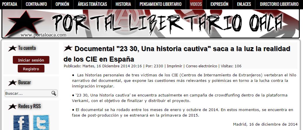 Noticia en el Portal Libertario Oaca (16.12.2014)