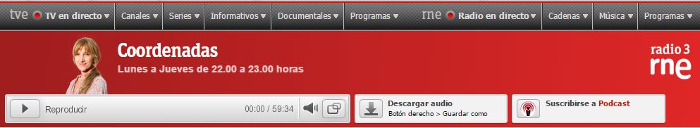 Programa Coordenadas de RNE Radio 3 (a partir del minuto 28:30) (12.01.2015)
